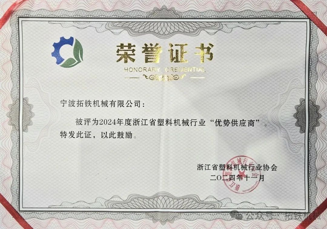 这是公司继2023年荣获宁波市塑机协会该项荣誉后,再度获评殊荣;也代表客户行业对于JY(中国)的肯定。公司将继续一步一个脚印,踏踏实实发展,力争得到各行业更广泛的认可。